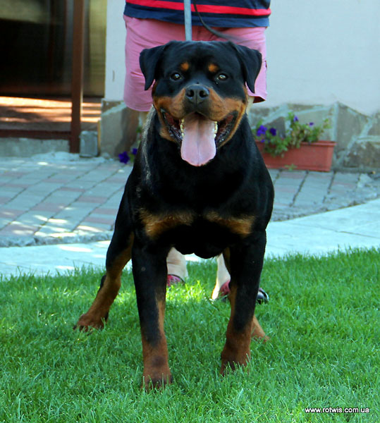 отец Интерчемпион Elvis Von Der Muhlbachstrasse /68 cm - ZTP, 62 kg - в 4 года/ один из Топ-производителей АДРК, его дети - победители и призеры ADRK KS и BS 2012 года! Elvis - сын легендарного чемпиона и производителя Mambo v Crossener Ranch и харизматичной двукратной победительницы клуба АДРК - Josy von den Hassberghohen
