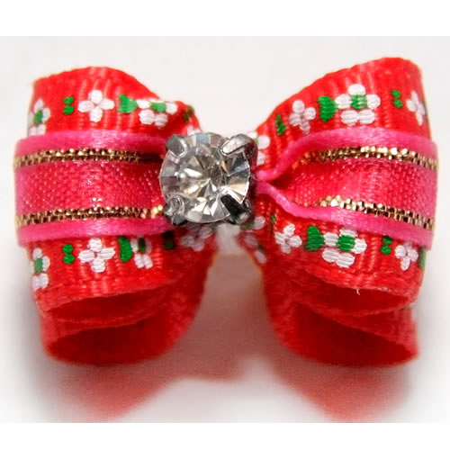 | Бантик на резинке красный с брилиантом 2 см
