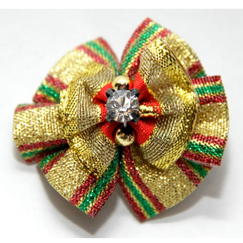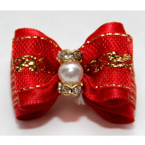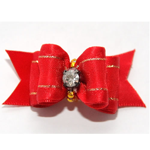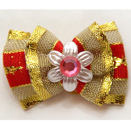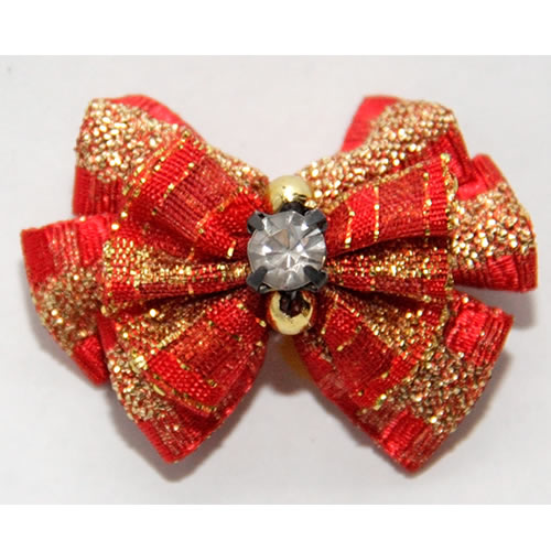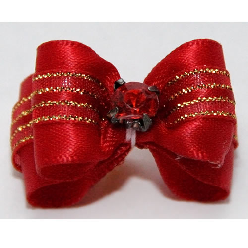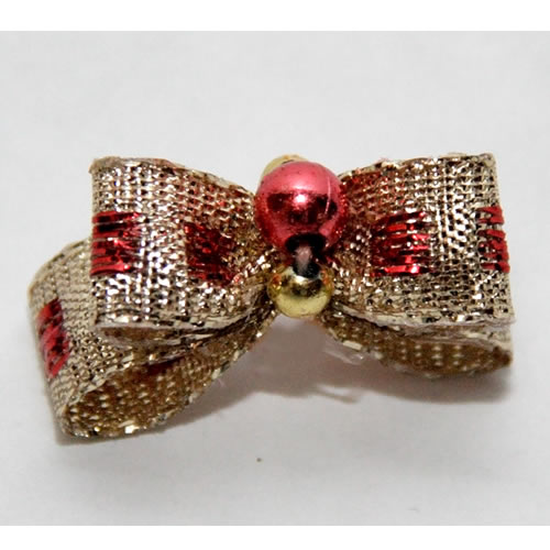 | Бантик на резинке золото с красным (3*2,5см)
