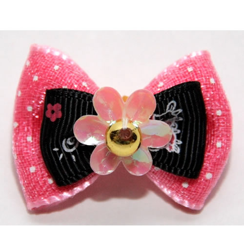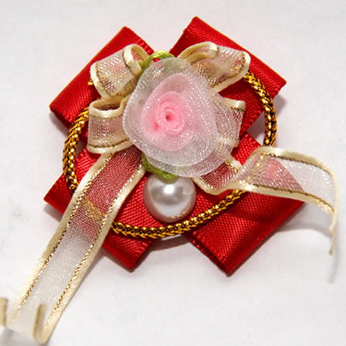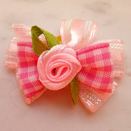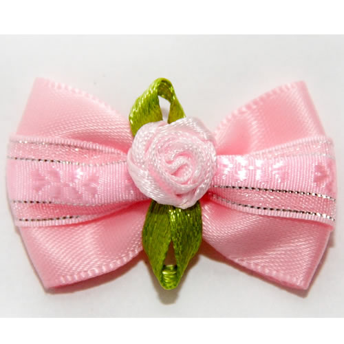 | Бантик на резинке розовый с красной розой 3,5 см