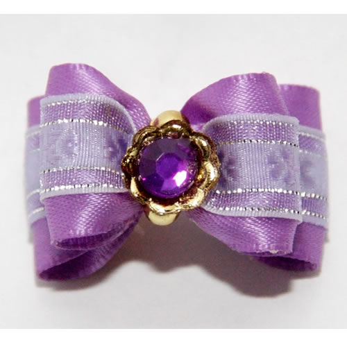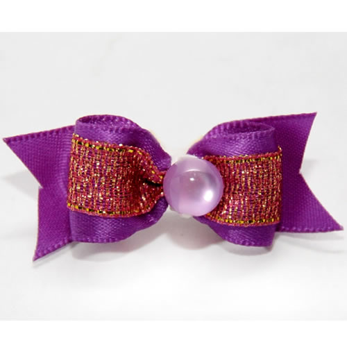 | Бантик на резинке фиолетовый с большим жемчугом 3,5см