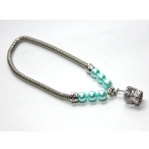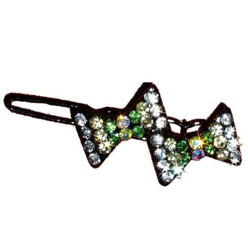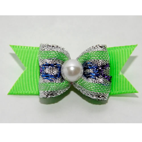 | Бантик на резинке зеленый с синей полосой и жемчугом 1,6 см