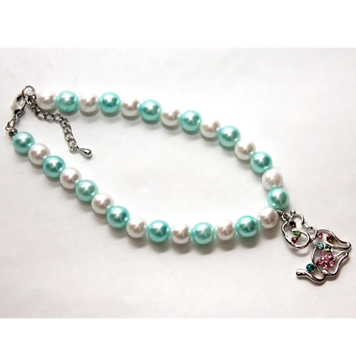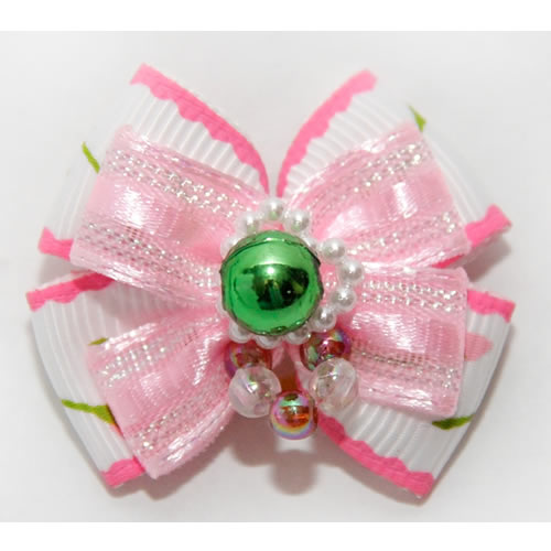 | Бантик на резинке белорозовый с зеленой жемчужиной 3,5 см