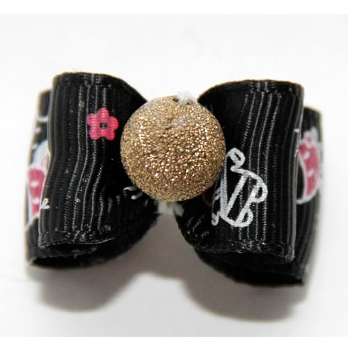 | Бантик на резинке черный с золотой серединой 3,5 см
