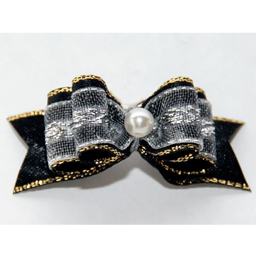 | Бантик на резинке черный с жемчугом 2 см