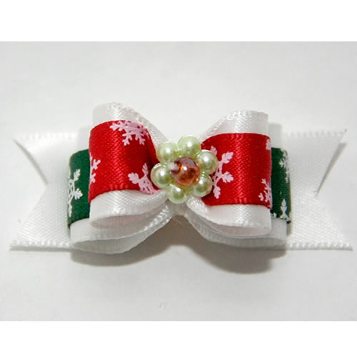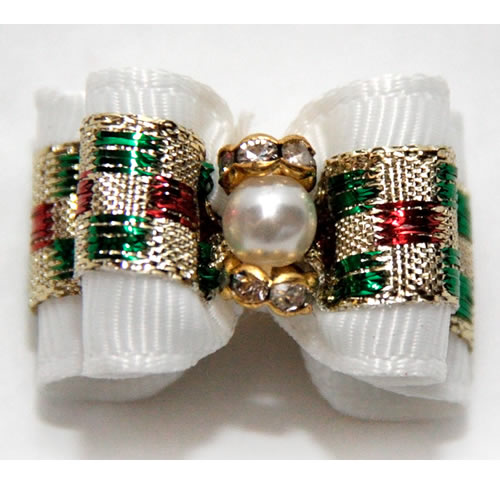 | Бантик на резинке белый Новый год с жемчугом 2 см