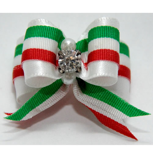 | Бантик на резинке белый с полосками с брилиантом 1,6 см