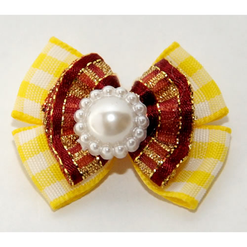| Бантик на резинке желто-малиновый(2,5*1,5см)